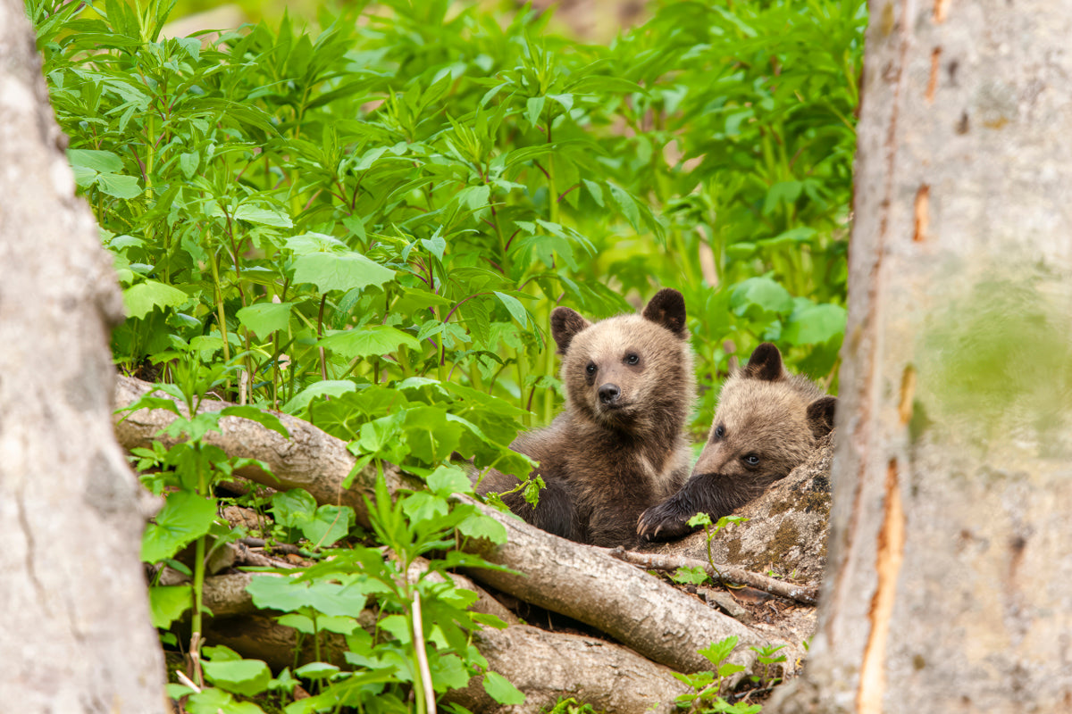 5・6月の作品は、母親が草を喰むそばで戯れる生まれて数ヶ月がたったヒグマの兄弟です。北海道知床半島での撮影です。